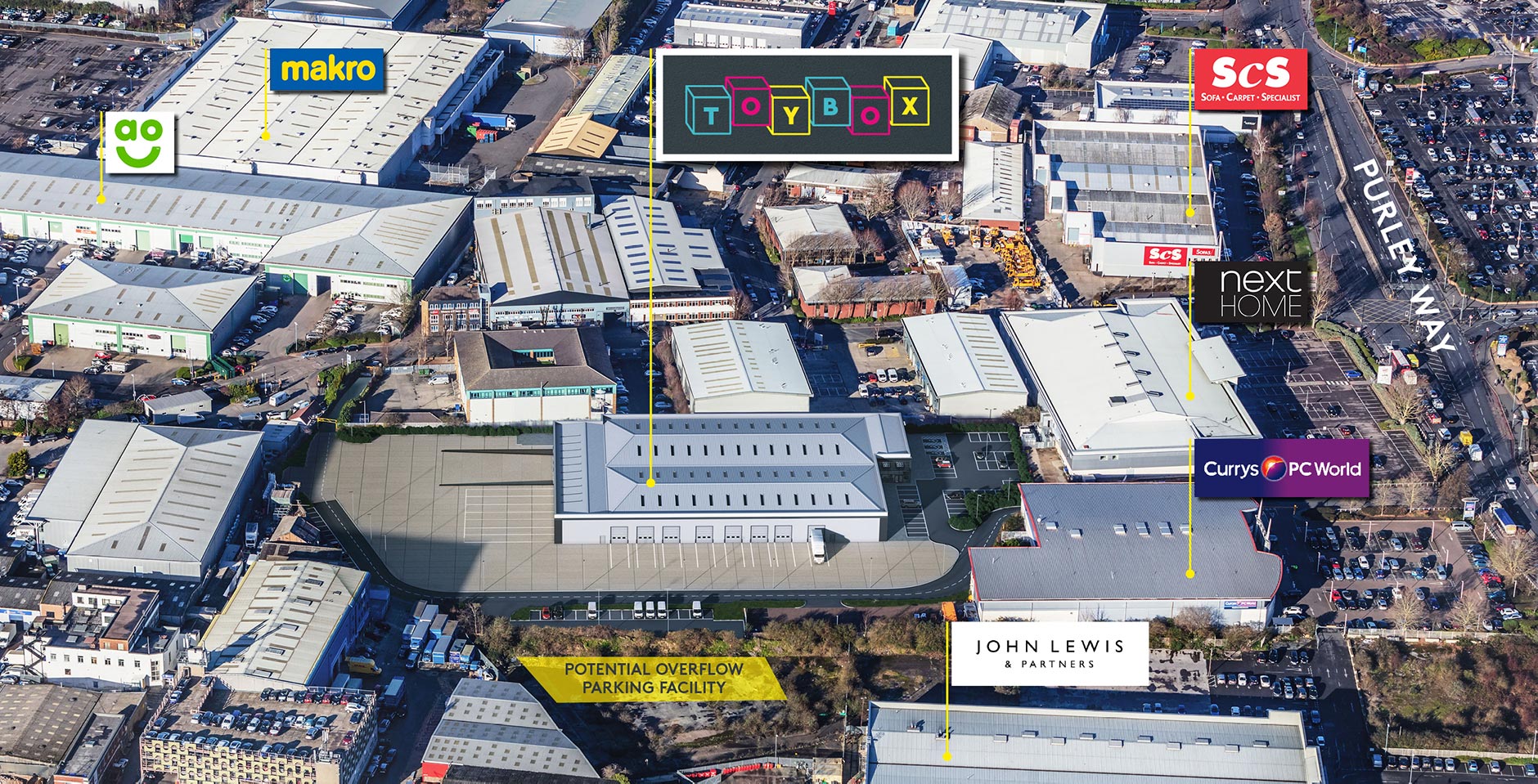 Toybox, Croydon, currently comprises the former Toys R Us retail unit, which is now vacant. The landlord will consider a full scale refurbishment and extension of the existing building, enhancing the specification to include additional fitted offices, loading doors and external yard.